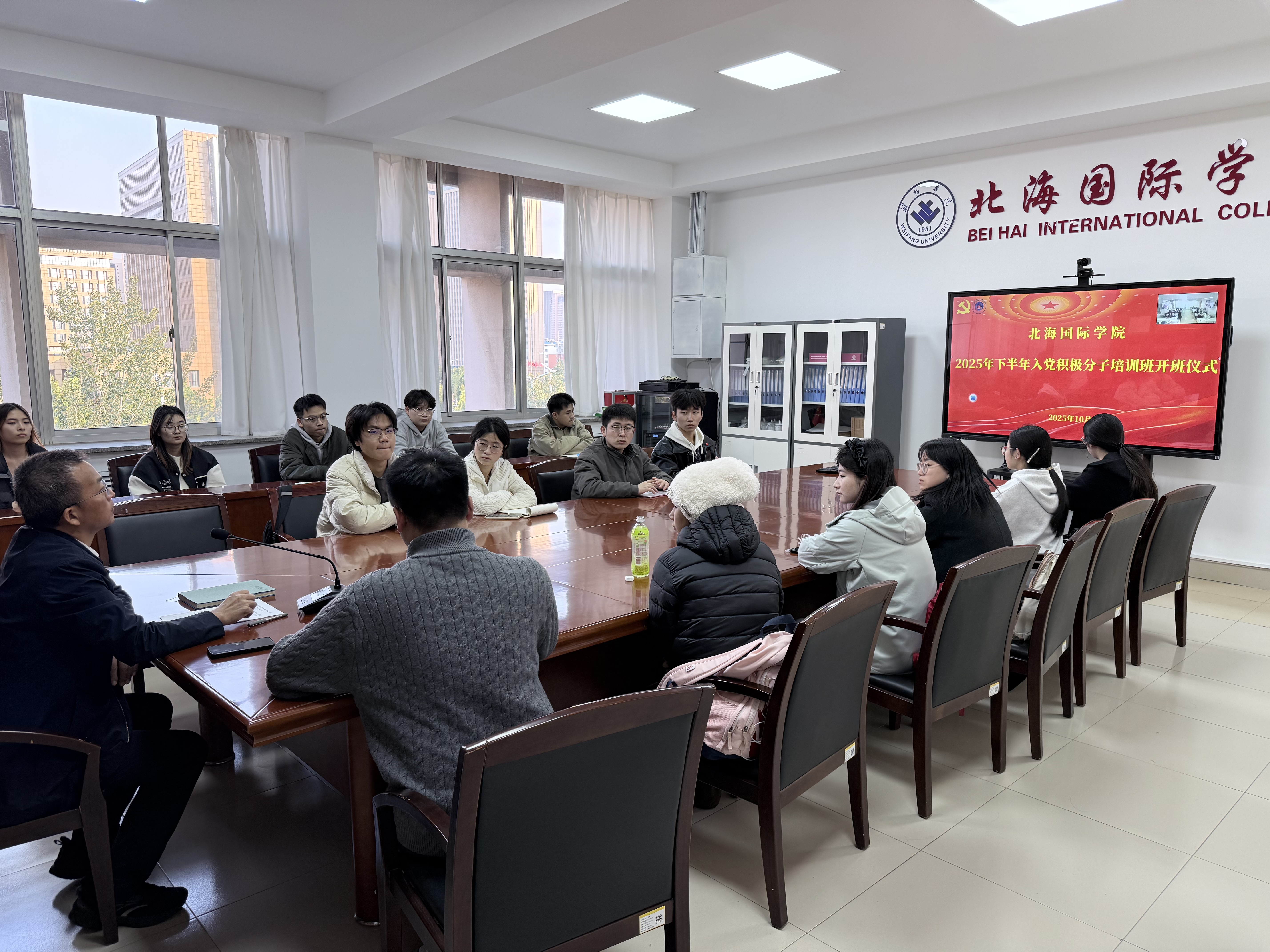 为扎实推进党员发展工作,提升入党积极分子的思想政治素养,10月21日,北海国际学院入党积极分子培训班开班仪式在7号楼7516会议室举行,安顺校区学员通过线上方式同步参与,学院党委书记兼院长韩建栋,党委副书记、副院长张晓丽出席会议,教师代表王欣仙及新发展入党积极分子参加会议,会议由学院团委副书记王世浩主持。