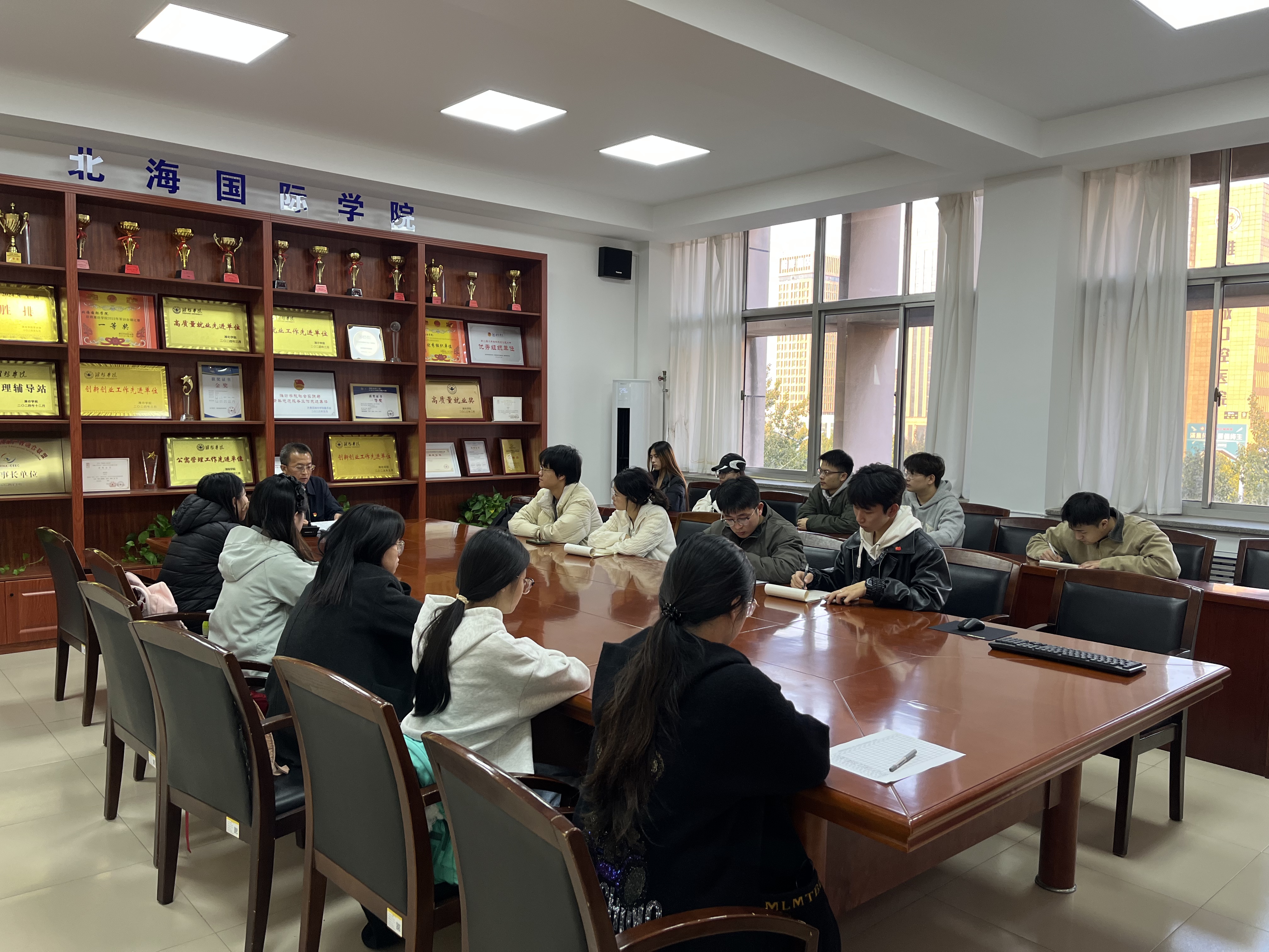 10月21日,北海国际学院党委书记兼院长韩建栋在7号楼7516会议室,以“党的纪律和作风”为主题,为入党积极分子讲授“中央八项规定精神”专题党课,安顺校区学员通过线上方式同步参与。