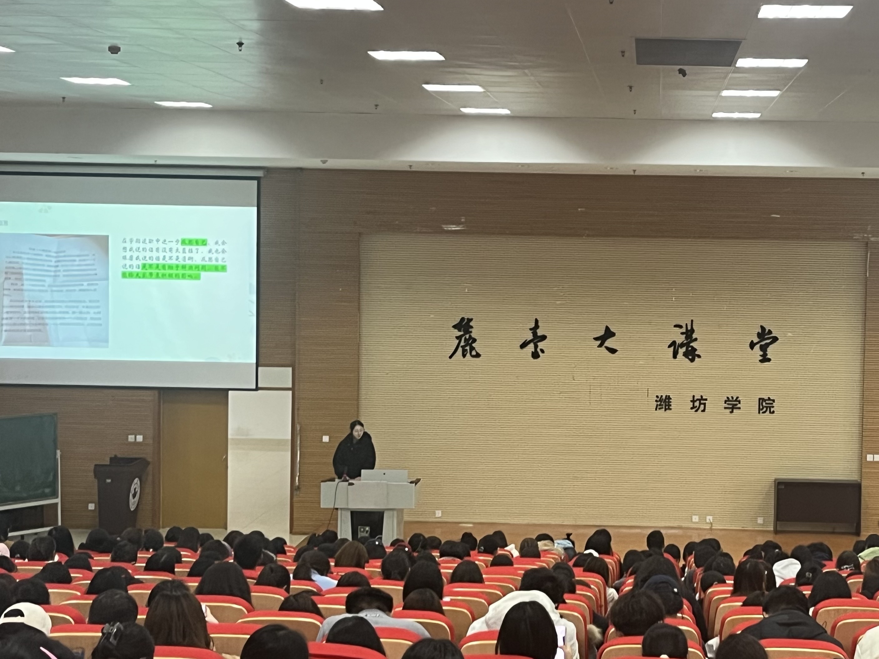 刘红秀以“身边榜样”为切入点,通过小雯同学勤奋钻研、从入学迷茫恐惧最终成长为自信教师的真实故事,让在场同学深刻感受到理想信念对个人成长的推动作用。同时,她结合“潍坊学院教学楼夹缝中的小树”这一鲜活意象,启发同学们:“小树在有限空间里向阳生长,正如我们在求学路上,要在挑战中坚守方向,让理想成为突破困境的力量。”