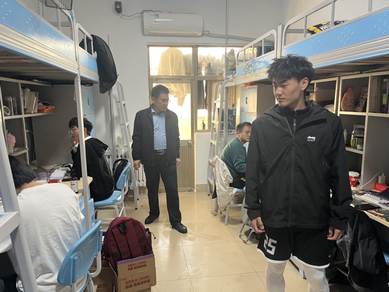 检查前,姚灵忠明确指出,冬季是宿舍安全隐患高发期,需以“最高标准”落实卫生整理与安全规范,将检查内容细化为卫生状况、安全隐患、生活秩序三大类,重点排查违规电器使用、消防设施完好度、门窗安全锁具及卫生死角清理情况,同时强调对学生用电安全、冬季防寒保暖知识的现场宣讲。检查过程中,检查小组采取“全覆盖、无死角”方式,对桌面物品摆放整齐、地面干净整洁的寝室现场表扬,针对部分寝室存在的物品堆放杂乱、垃圾桶未及时清理等问题,现场指导学生整改;针对使用大功率电热器、插线板乱接等隐患,进行详细记录并跟踪复查。同时,检查小组还与学生面对面交流,提醒学生冬季注意通风换气、防范流感,增强安全防范意识。从检查结果来看,多数宿舍能保持良好的卫生习惯和安全规范,整体情况良好。