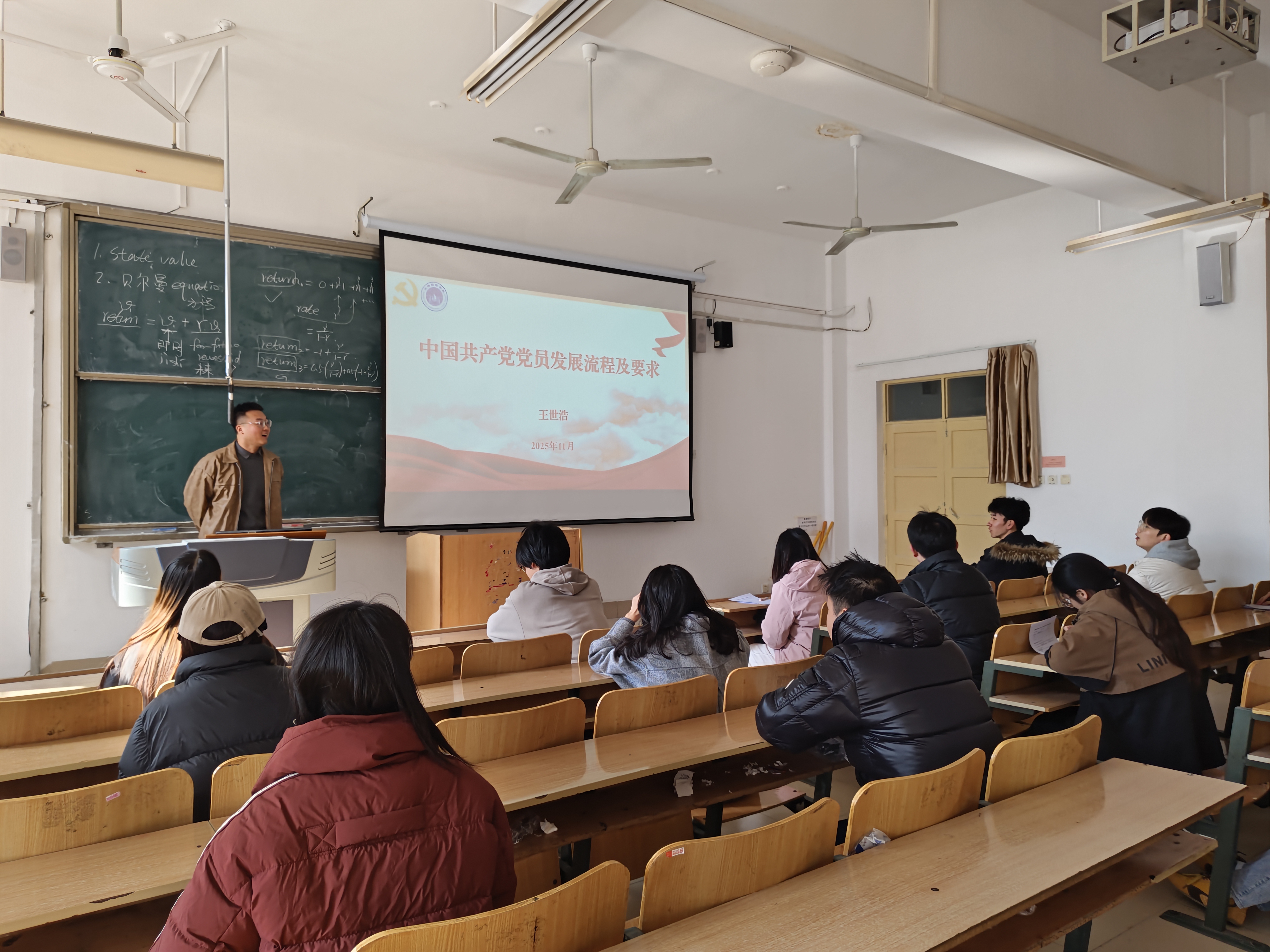 王世浩围绕“中国共产党员的发展流程及要求”进行讲解,详细介绍了入党申请、入党积极分子培养教育、发展对象确定与考察、预备党员接收与转正等全流程环节,明确了各阶段的具体标准与注意事项,为学员们规范有序地向党组织靠拢提供了清晰指引。