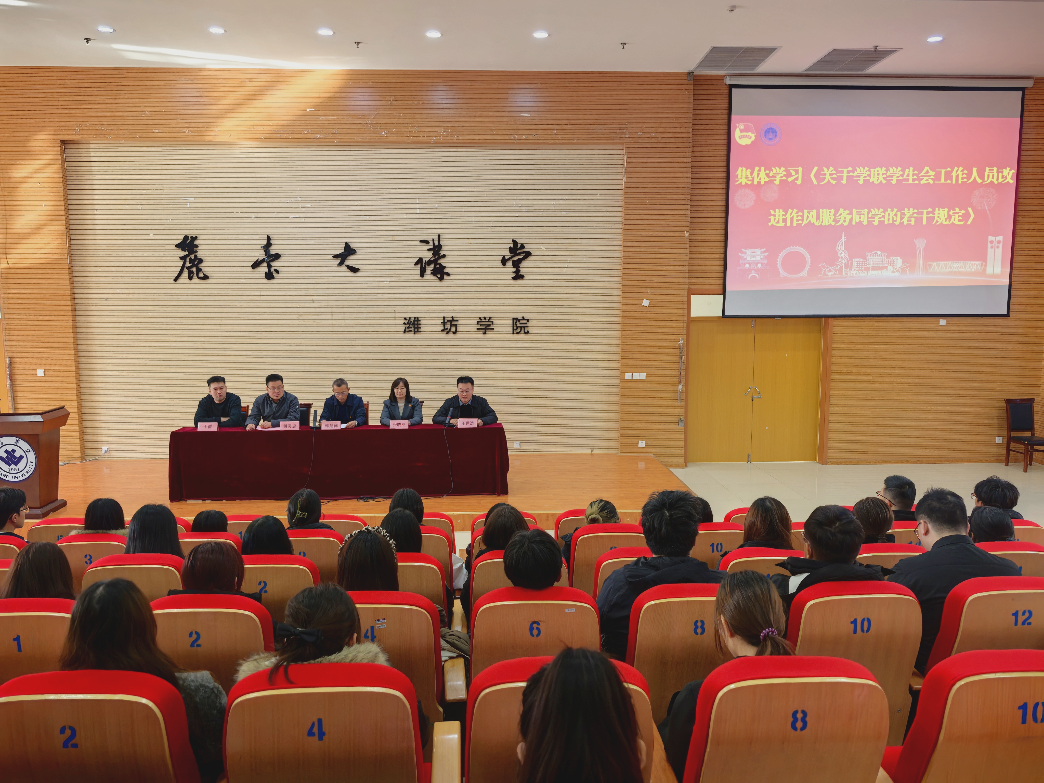 王世浩带领全体参会人员集体学习《关于学联学生会工作人员改进作风服务同学的若干规定》,重点强调“恪守学生本分、牢记服务宗旨、永葆理想情怀、务实做事、营造平等氛围、摒弃庸俗习气”六条核心要求,为干部履职划定“红线”与“标线”。