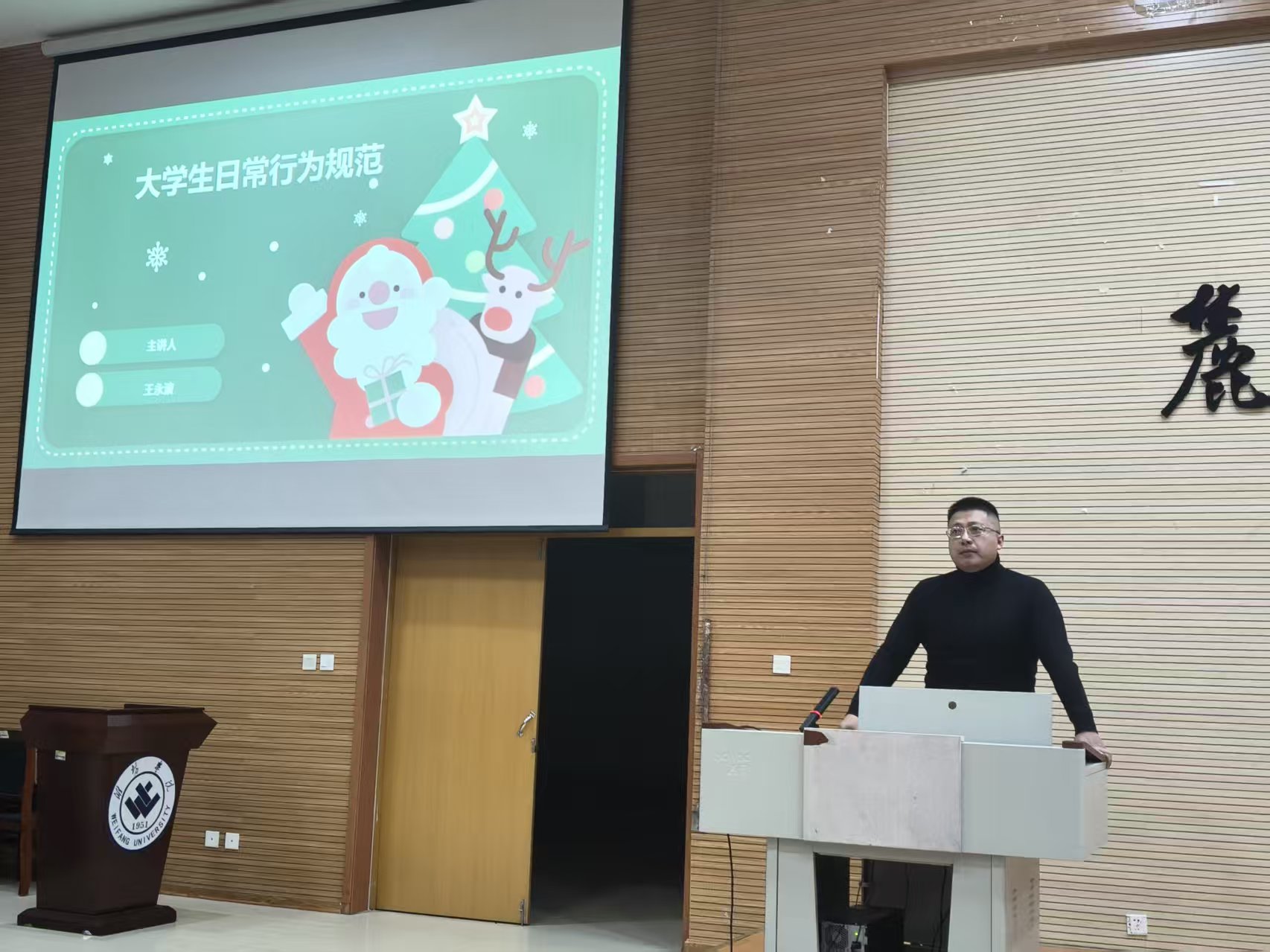 在“大学生日常行为规范”主题课程上,王永波立足学生成长需求,从学习、生活、社交三大核心维度系统展开讲解。他重点强调,大学阶段的学习核心在于自主规划与效率提升,鼓励同学们制定科学的学习计划,主动探索专业知识,夯实学术研究基础,同时对课堂纪律、宿舍卫生管理、文明社交礼仪等具体行为规范进行了细致阐释,引导学生树立自律意识,养成良好习惯。