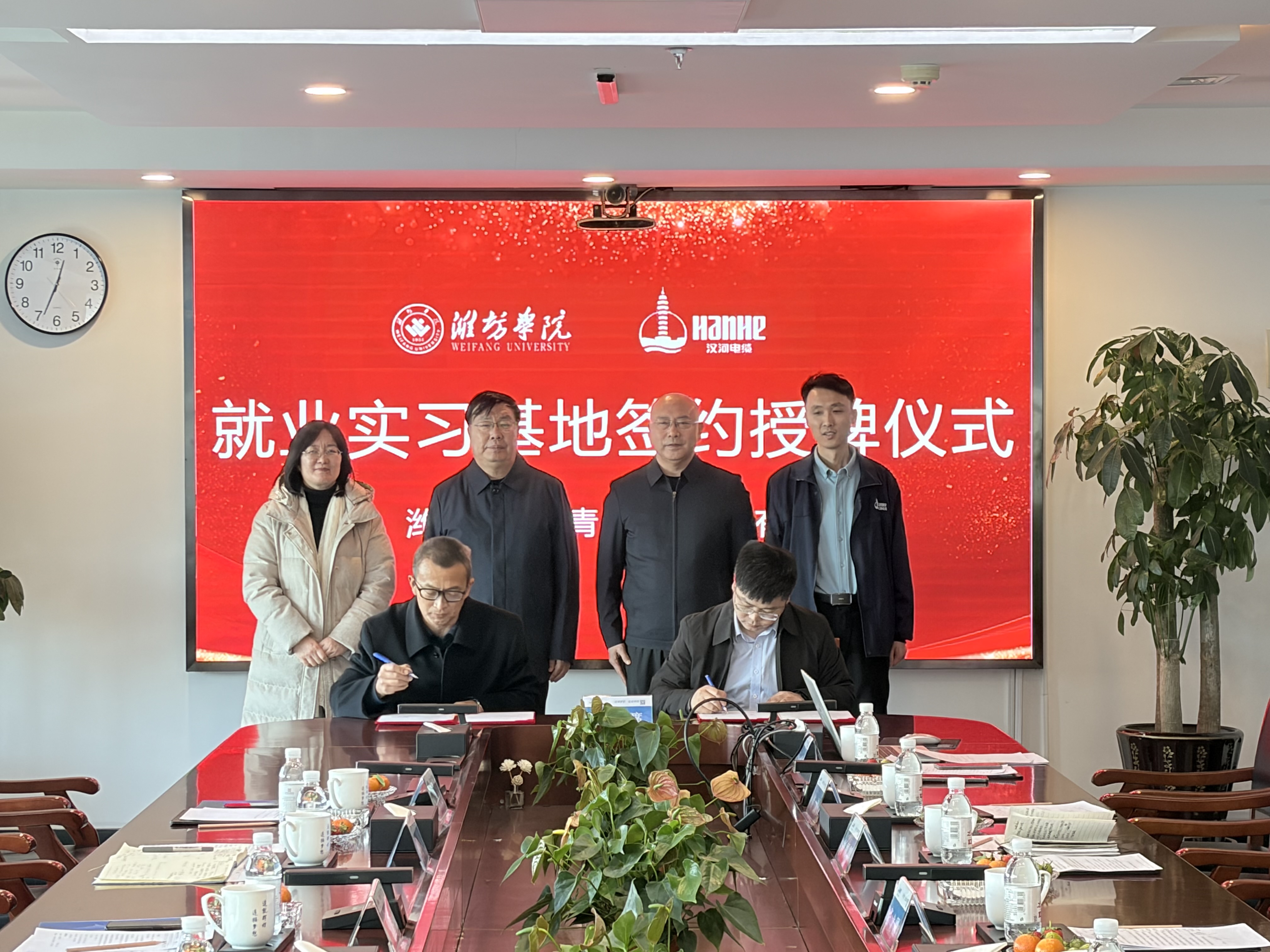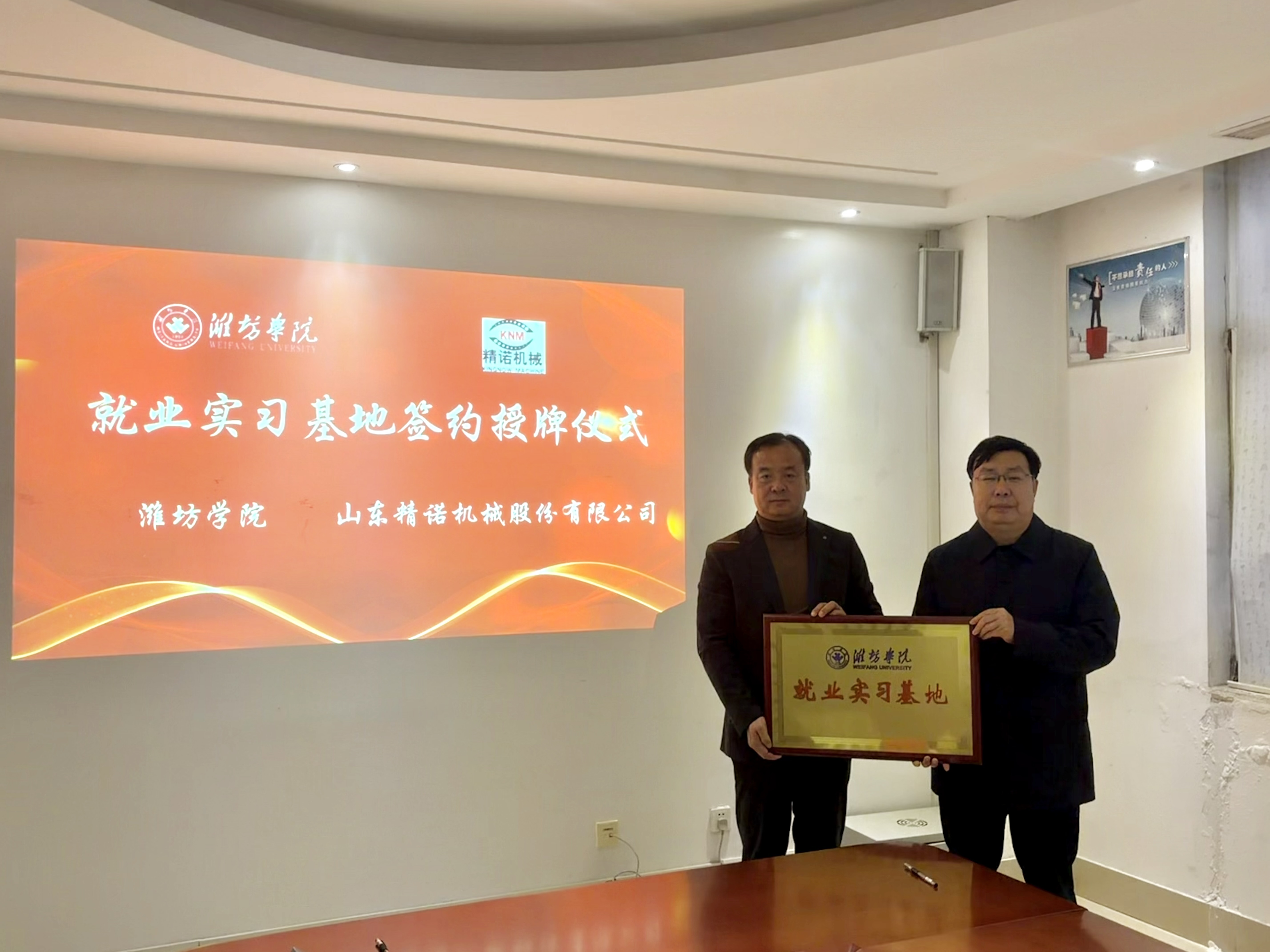 王成端代表学校分别向三家企业颁授“就业实习基地”牌匾,韩建栋与相关企业签署就业实习基地建设及相关教科研合作协议。
