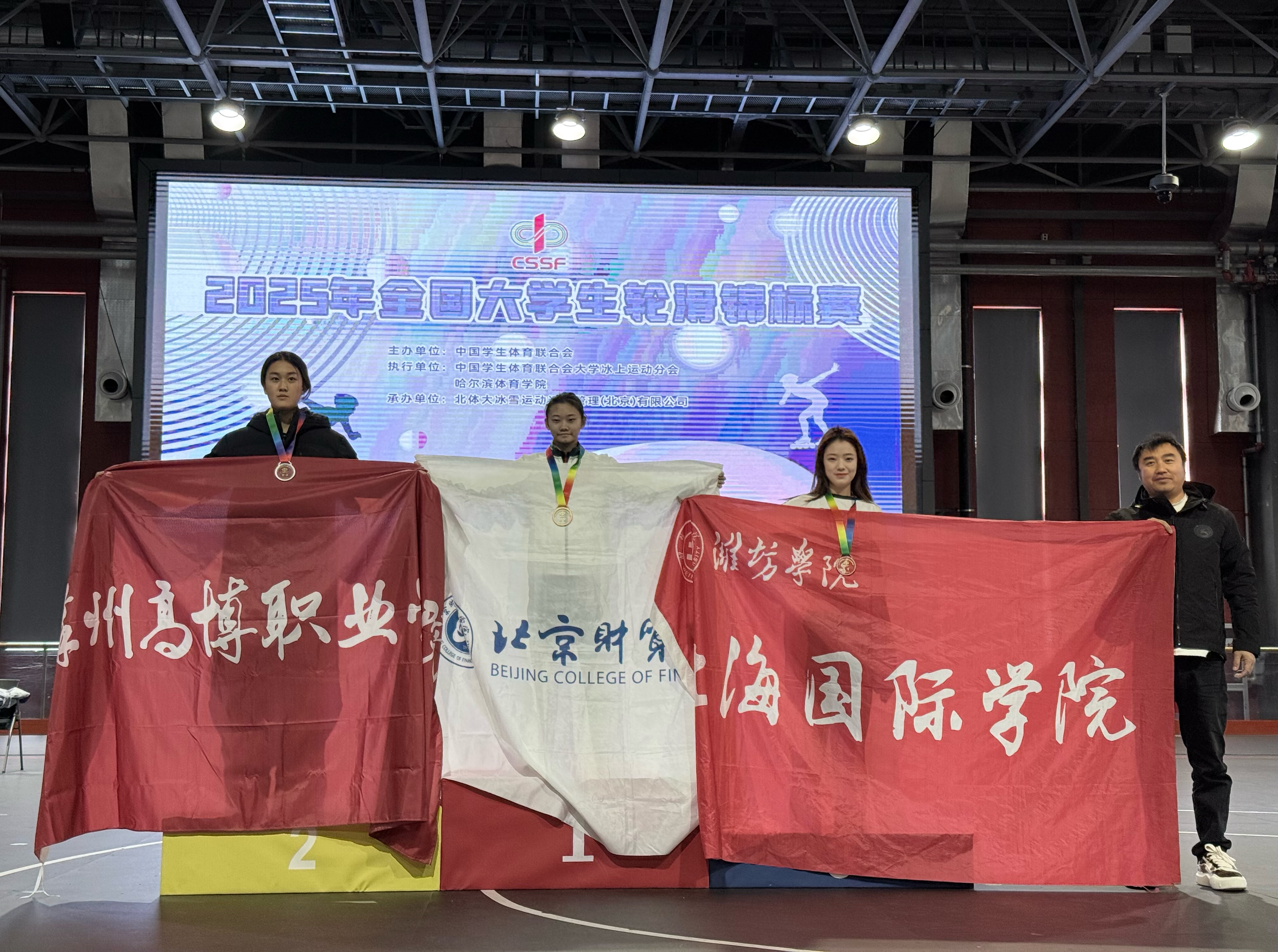 近日,2025年全国大学生轮滑锦标赛在北京体育大学二七国家冰雪运动训练科研基地圆满落幕。学院2023级商务英语专业学生崔宵雅自主报名参赛,参与自由式轮滑速度过桩、花式绕桩两个项目的激烈角逐,凭借扎实的技术功底和稳定的临场发挥,在强手如林的赛场上脱颖而出,斩获1银1铜优异成绩。